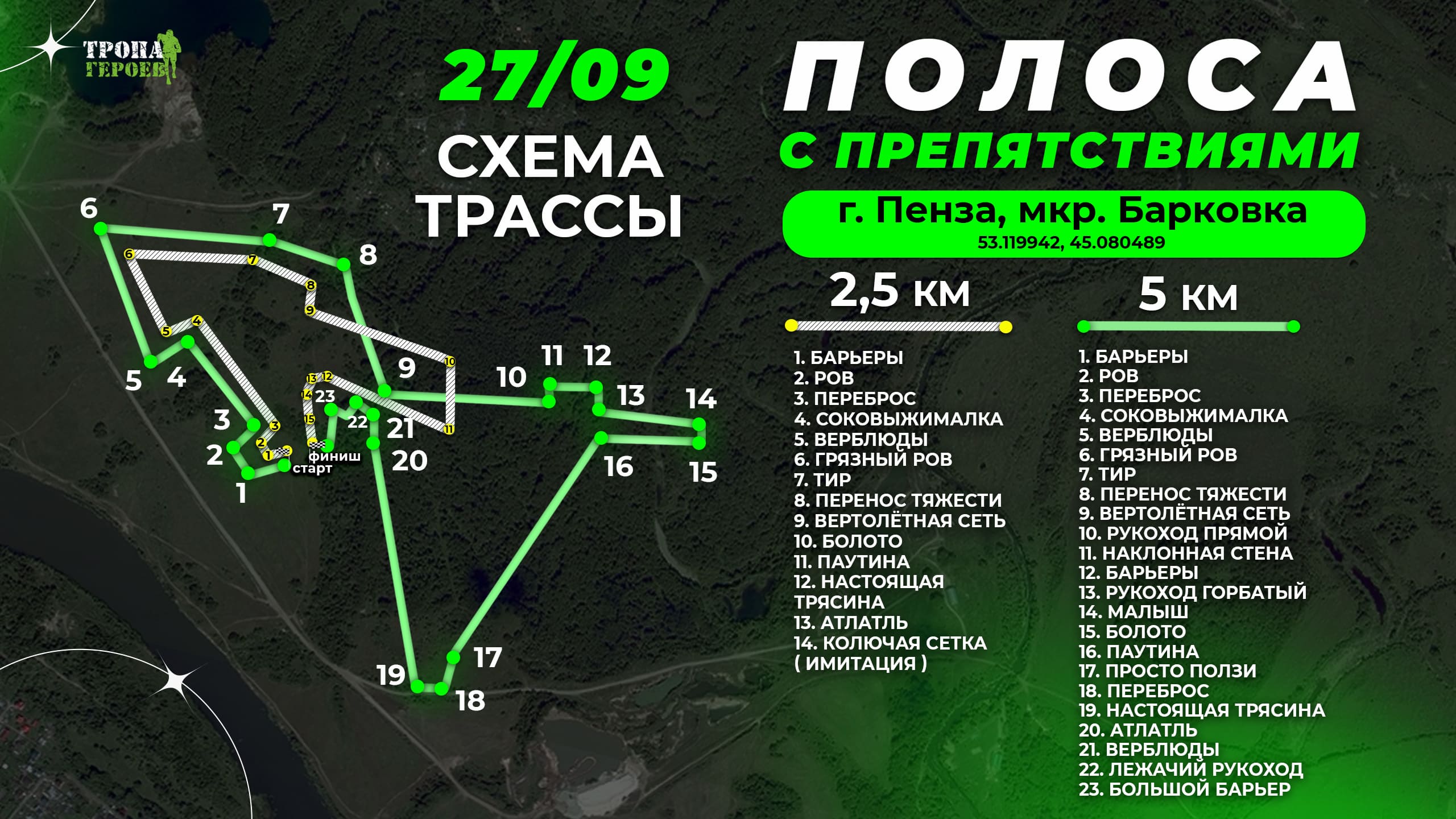 Впервые в г. Пенза состоится «Тропа Героев» масштабное спортивное благотворительное мероприятие на основе забегов по пересечённой местности с препятствиями для совершенно разных категорий участников, для семей, подростков, любителей и профессионалов спорта, командные, личные и парные забеги.